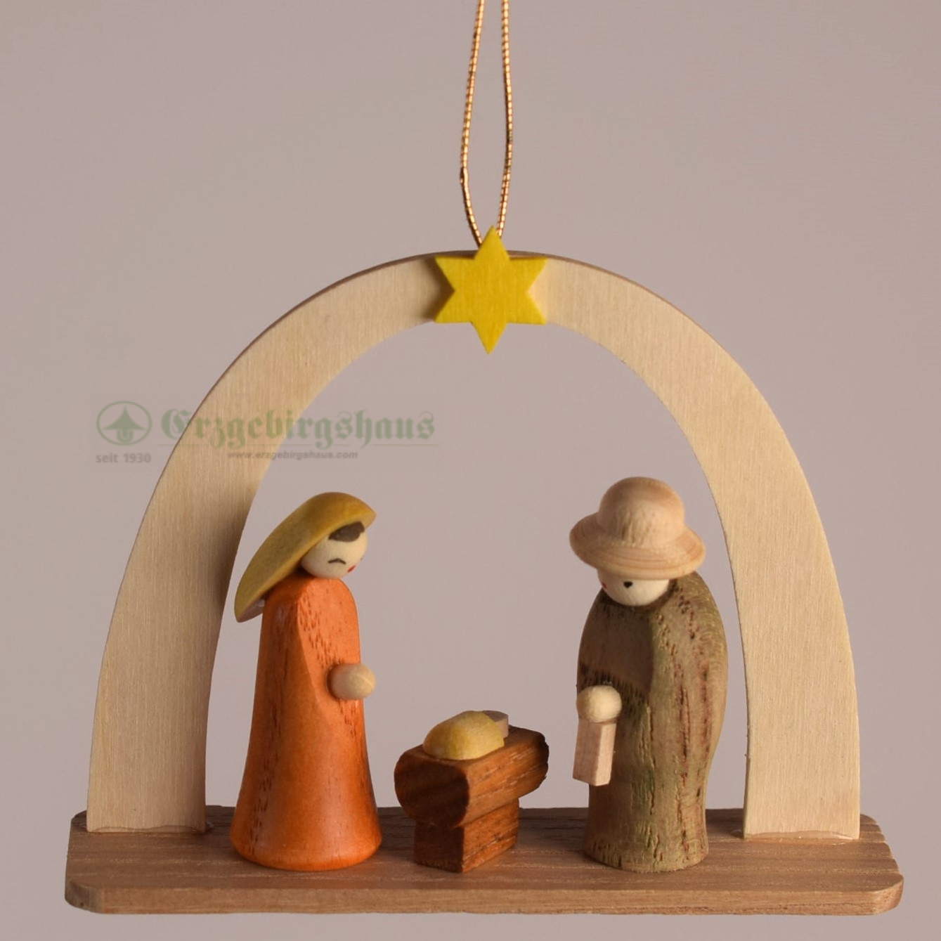 - Maria, Josef und Krippe farbig lasiert, Bogen natur