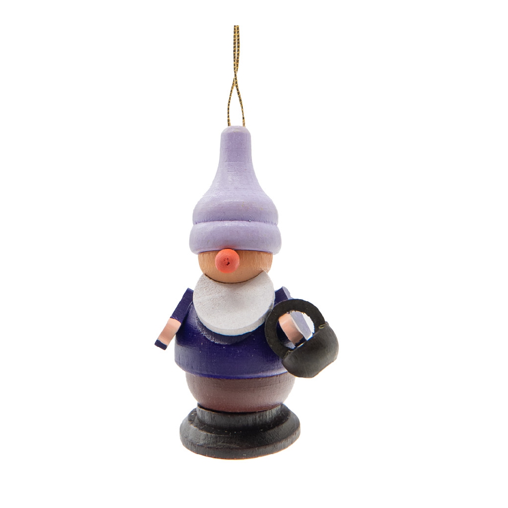 Wer kennt es nicht, das Märchen vom Schneewittchen hinter den 7 Bergen bei den 7 Zwergen, einer davon ist dieser kleine Kerl mit Körbchen. Natürlich darf auch am Weihnachtsbaum ein Hauch von Märchen nicht fehlen, mit diesem Baumbehang Zwerg mit Körbchen gestalten Sie Ihre eigene kleine Weihnachts-Märchenwelt. Flieder-farbene Zipfelmütze und lila Jacke sowie weißem Rauschebart, so stellt man sich doch einen richtigen Zwerg vor, vom freundlichen Gesicht ist nur noch die rote Knollennase zusehen, da die Zipfelmütze bis ins Gesicht gerutscht ist. In Händen hält der kleine Kerl einen schwarzen Korb. Was er wohl darin hat?