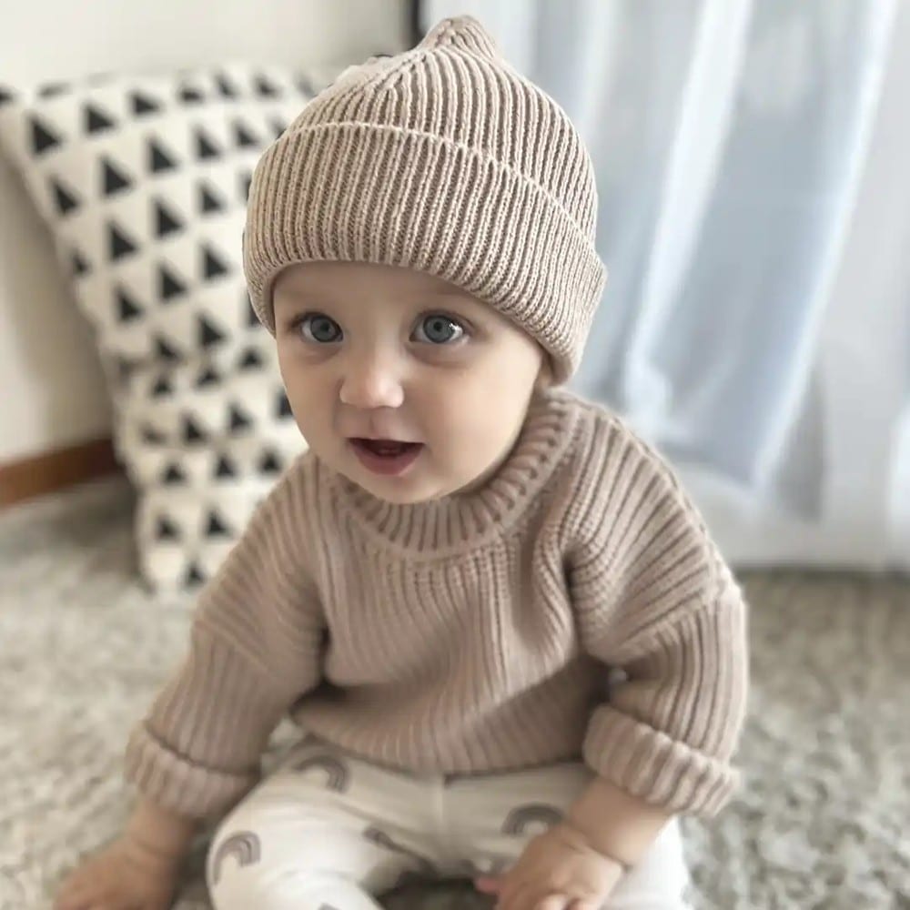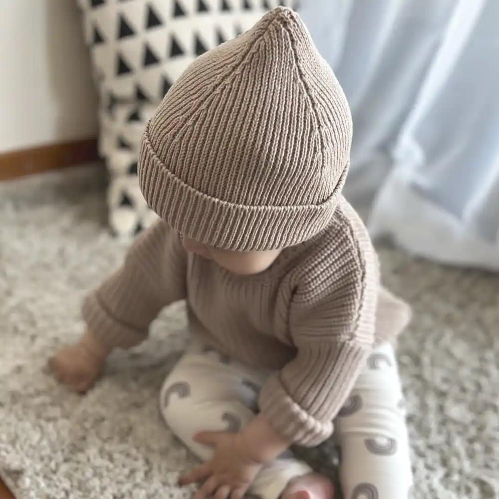 Unser Beanie ist leicht oversized geschnitten. Die Größe 1-2y gibt einiges nach und kann im Normalfall problemlos über das 2. Lebensjahr hinaus getragen werden.