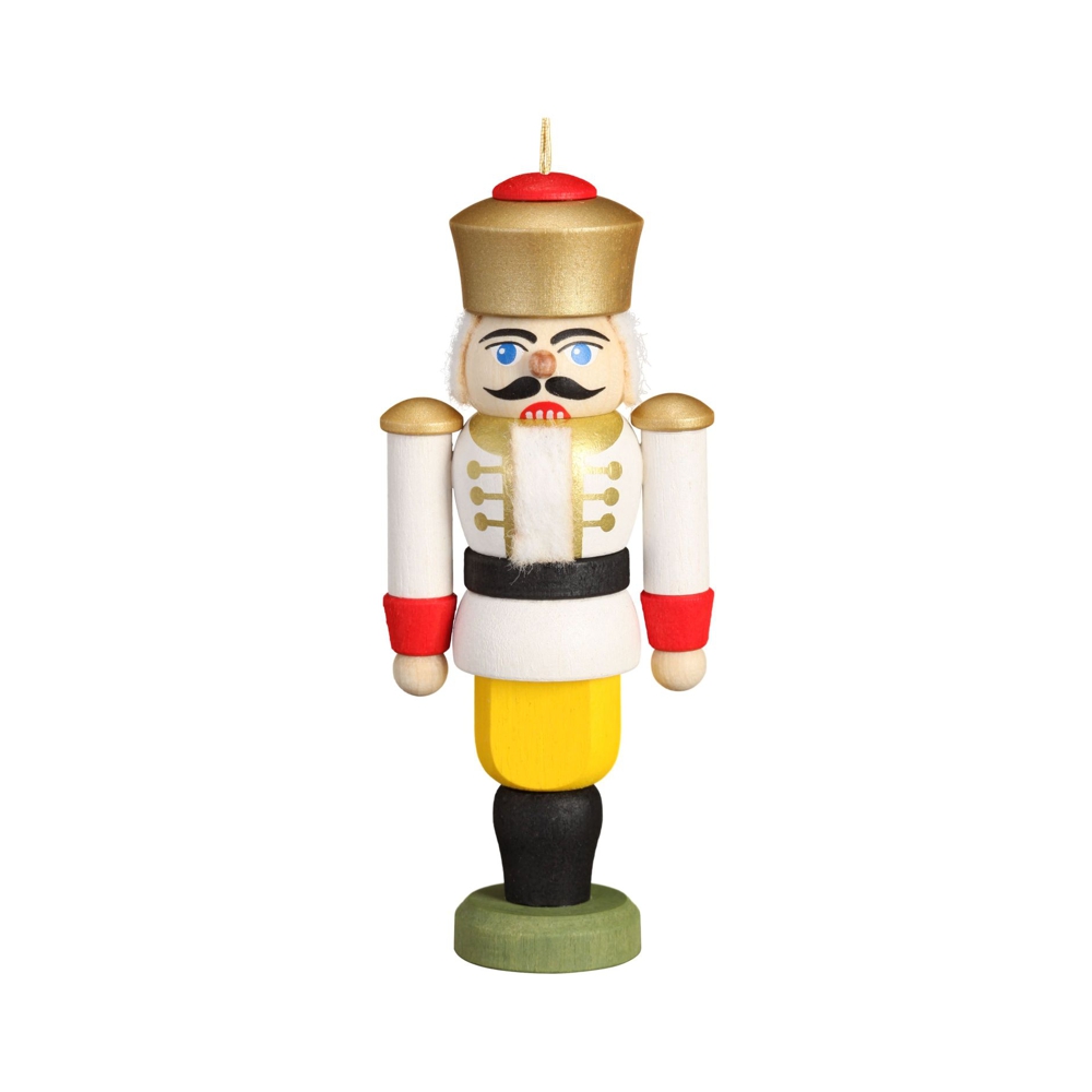 Dieser Behang Miniatur Nussknacker König, weiss wird in liebevoller sowie detailreicher Handarbeit von der Seiffener Volkskunst in der Schauwerkstatt in Seiffen gefertigt.
