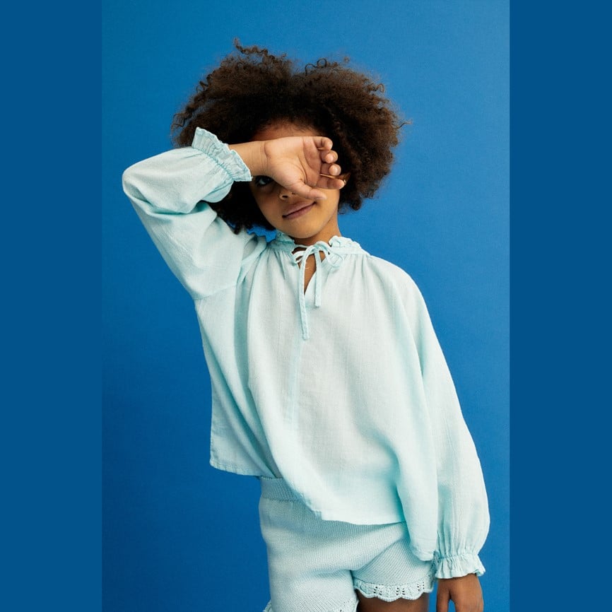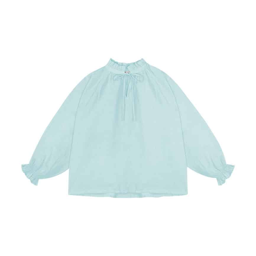 Die zauberhafte Bluse Olivia ist auch diese Saison wieder da. Mit einer weiten Passform, Puffärmeln und einem gerafften Stehkragen, ist es ein leichtes Kleidungsstück, das voller Bewegung ist.