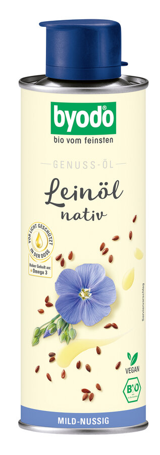 Byodos Leinöl vereint köstliche, feine Nussigkeit mit einem hohen Gehalt an Omega-3. Dank der verwendeten Goldleinsaat und schonender Pressung ist es mild im Geschmack, ohne die typische Bitternote. Der Hohe Gehalt an Omega-3 sowie der einzigartig milde Geschmack werden in der Dose optimal vor Licht geschützt und bleiben somit länger erhalten. Somit verfeinert es mit seiner milden Nussigkeit jedes Müsli, passt aber auch herrlich zu Dips oder Quark mit Pellkartoffeln.