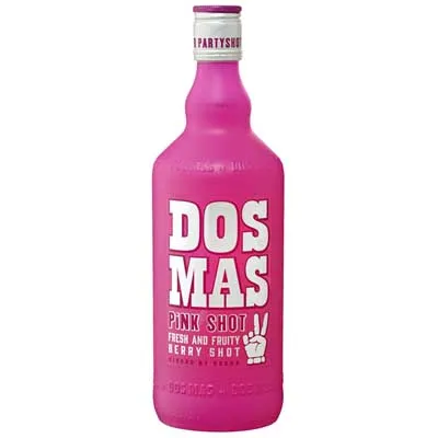 Den Pink Shot, Zimtlikör mit Chili-Kick und Whisky, 17 % Vol., der Marke Dos Mas erhalten Sie in einer 0,7 l Flasche.