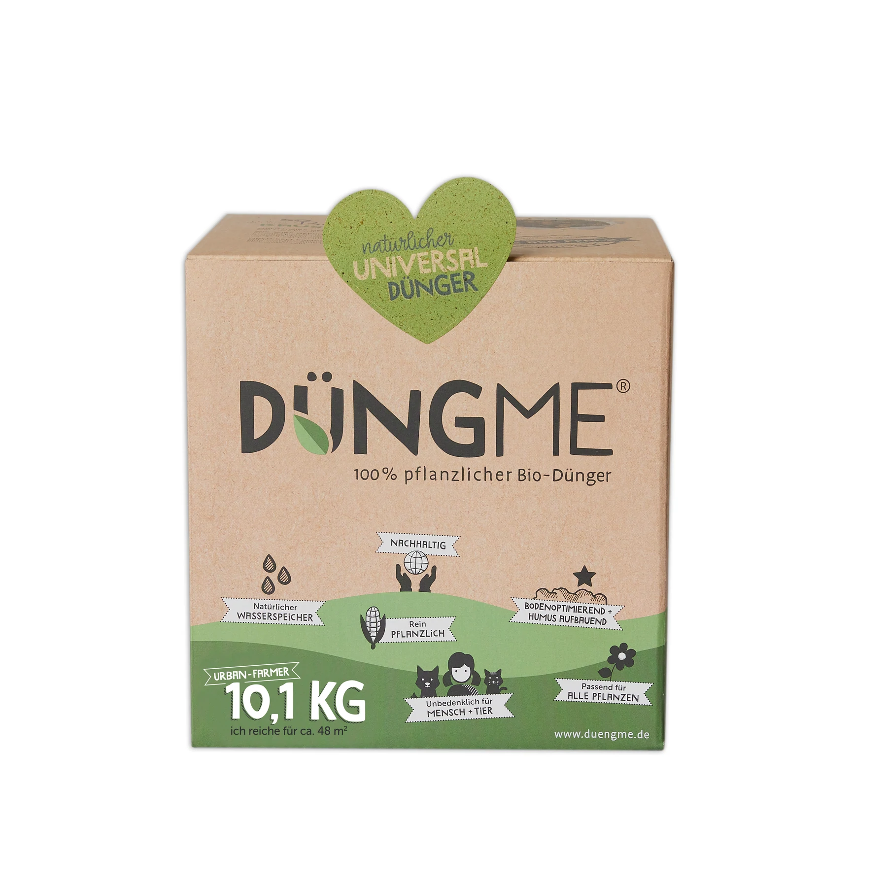 Zusätzlich sind die Düngepellets in nachhaltigen und umweltfreundlichen Kartonagen verpackt – komplett plastikfrei. DüngMe hat weder in der Erzeugung, noch bei der Lagerung oder während der Anwendung giftige oder schädliche Nebenwirkungen.