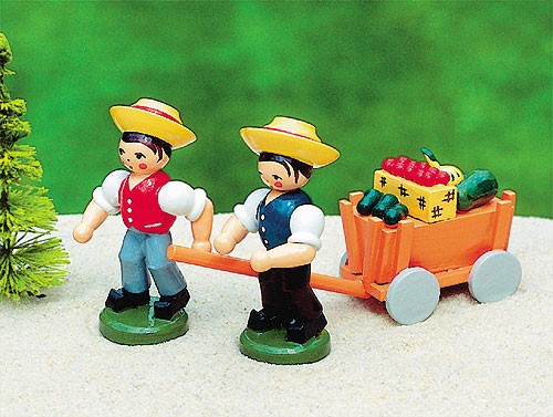 Diese Figuren Erntewagen mit 2 Jungen farbig kommen aus dem Hause Esco/Zeidler, hergestellt in liebevoller sowie detailreicher Handarbeit.