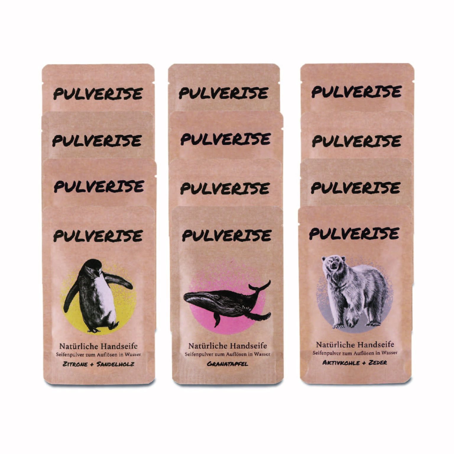 Für Pulverise verwenden wir ausschließlich natürliche Zutaten aus nachwachsenden Rohstoffen und verzichten bei der Herstellung auf jeglichen Schnickschnack. Deshalb reinigt unsere Seife besonders schonend – und spurlos: Sowohl das Pulver als auch die Verpackung sind vollständig biologisch abbaubar.