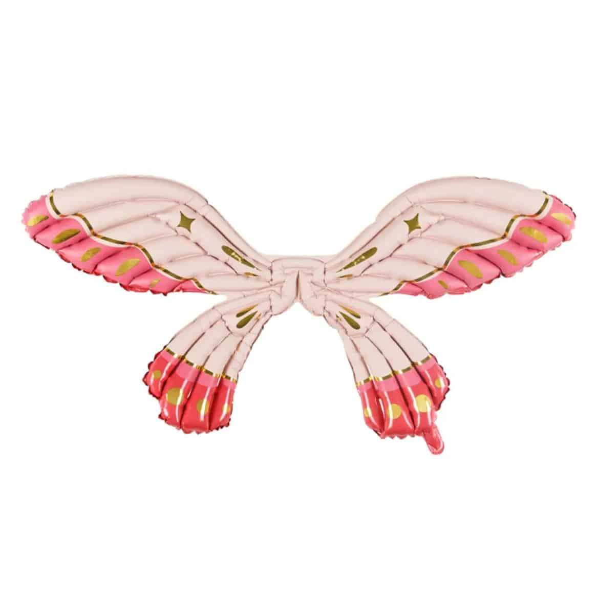 Folienballon in Form von Schmetterlingsflügeln, mit Schnüren zum Befestigen am Rücken, matt rosa Farbe