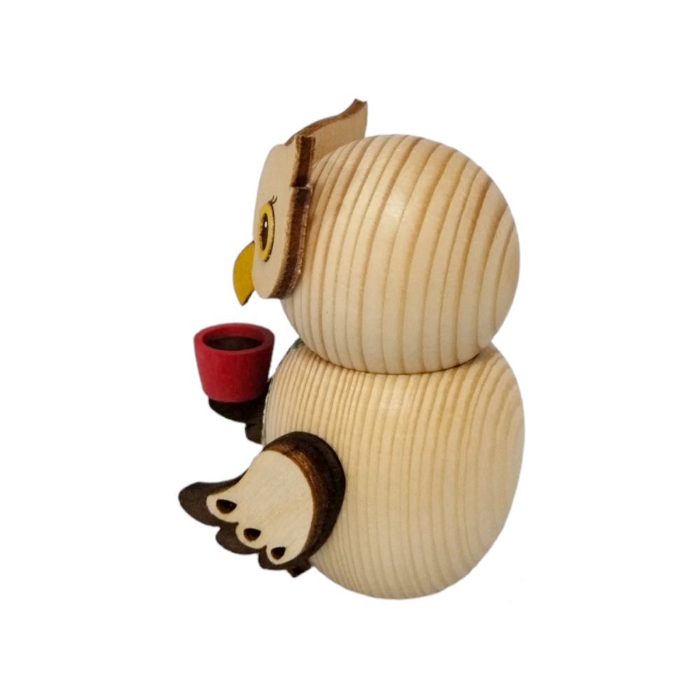 Zuwachs in der Eulen Familie, diese liebevoll gestaltete Holzfigur Mini-Eule Chef stammt aus dem renommierten Hause Kuhnert. Mit liebevoller Handarbeit gefertigt, ergänzt diese Mini-Eule die Vielfalt Eulen Serie. Eulen werden in zahlreichen Kulturen als Sinnbild für Weisheit angesehen. In jüngster Zeit sind sie aufgrund ihrer großen Augen und ihres faszinierenden Blicks zu regelrechten Kultobjekten avanciert.