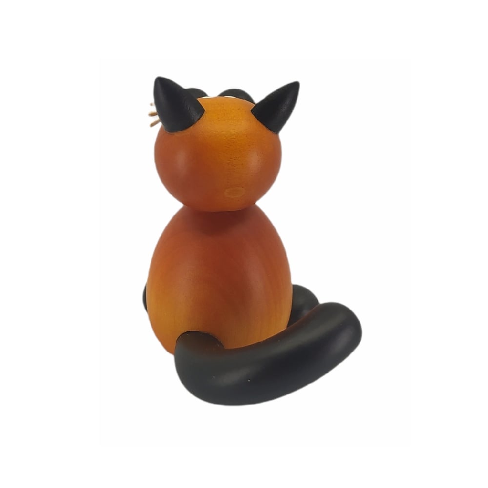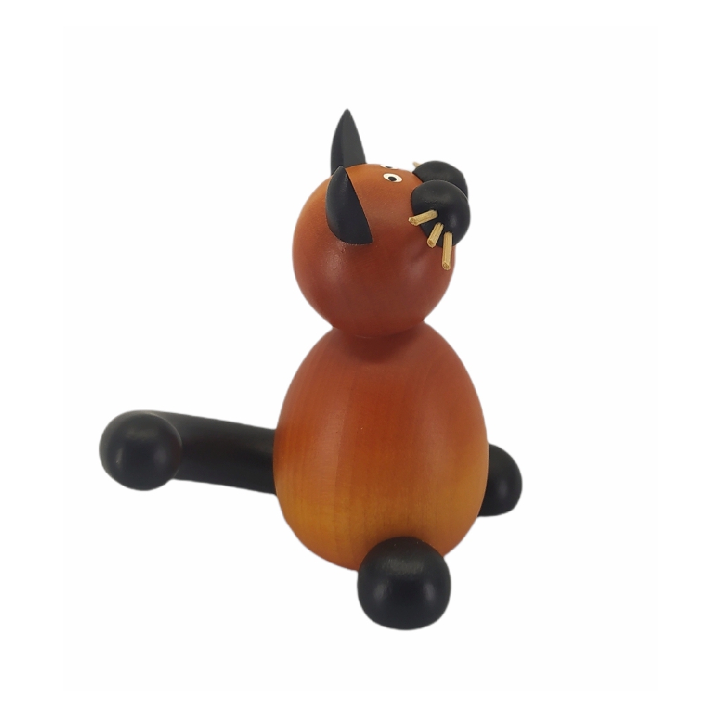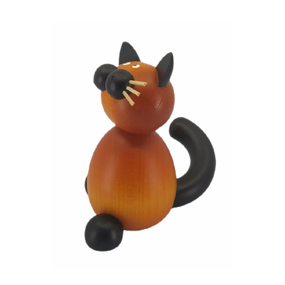Diese hübsche Katze Bommel sitzend wird in traditioneller sowie liebevoller Handarbeit von der Drechslerei Martin gefertigt.