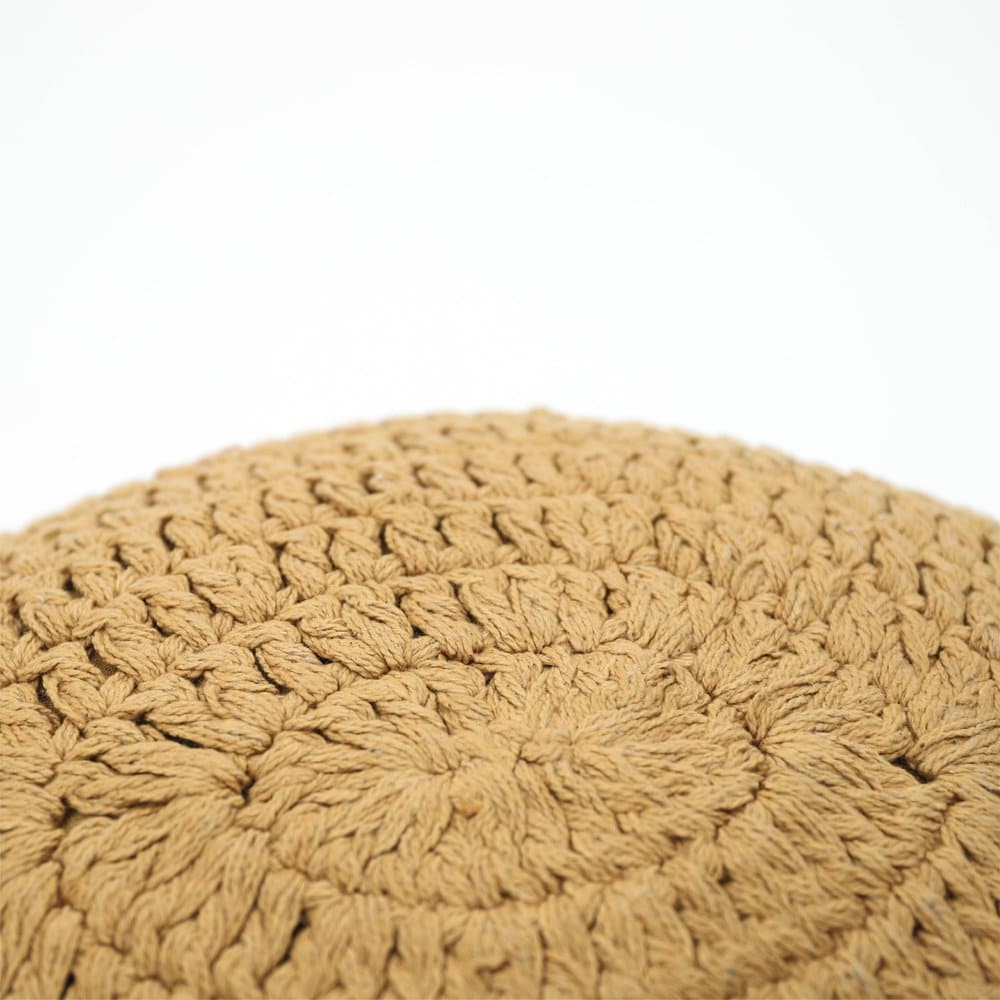 Ein wunderschönes, dekoratives Häkelkissen, das mit zwei großen Pompons verziert ist. Es passt einfach perfekt auf ein Bett oder Sofa.