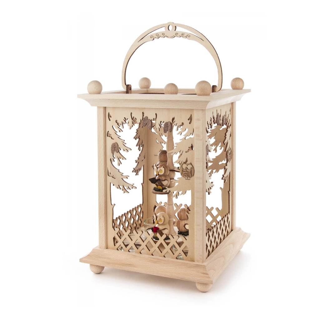 4 Teelichter sorgen dafür, dass sich das Innenleben dieser Laternenpyramide Wald, leer dreht.