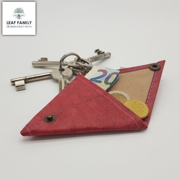 Dieser coole Geldbeutel mit Schlüsselanhänger im einzigartigen Teakblatt-Design nimm gerne Münzen und einen gefalteten Geldschein auf, damit man immer eine kleine Reserve hat. Diese Geldbeutel lässt sich von 2 Seiten bedienen.