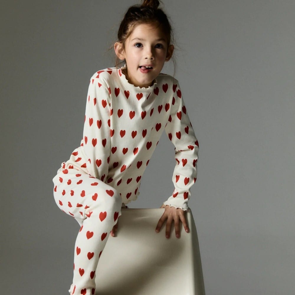 - Longsleeve gerippt mit Herz Motiv all over