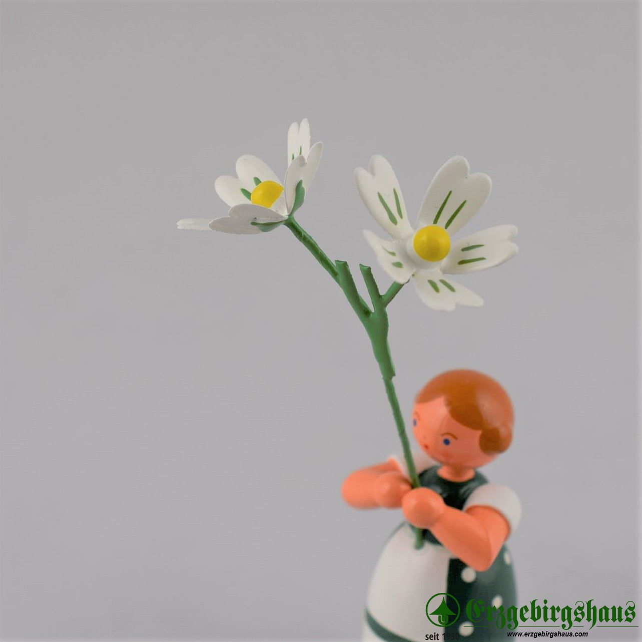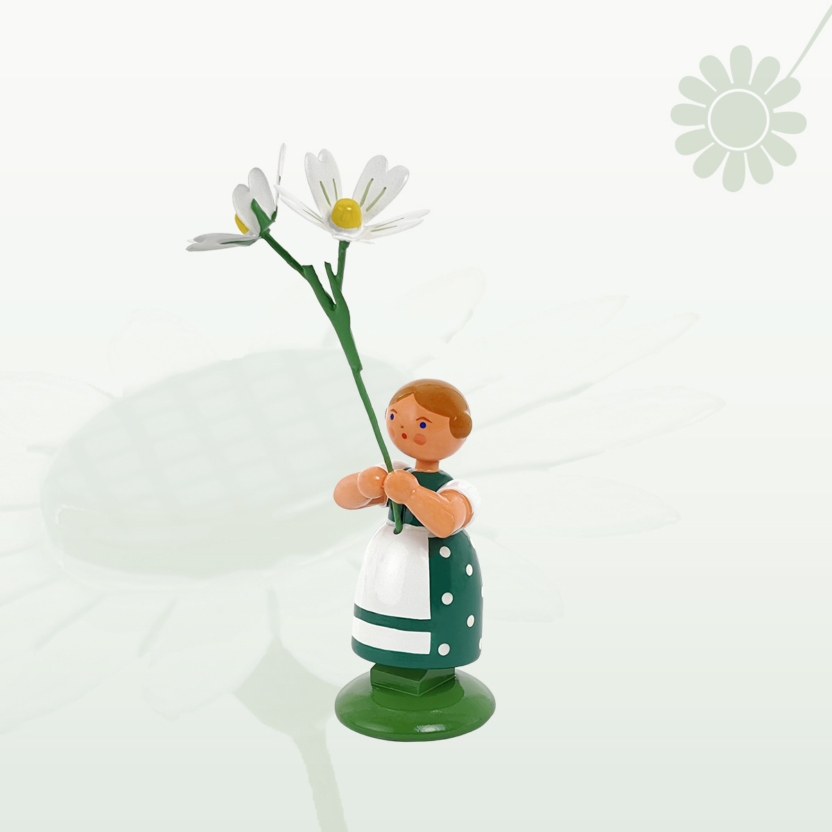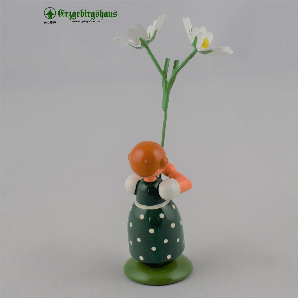 • Figur "Mädchen mit Sternmiere – Wiesenblumenmädchen auf Sockel" farbig lackiert