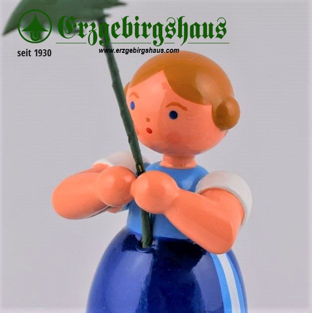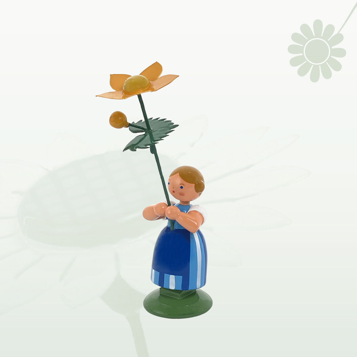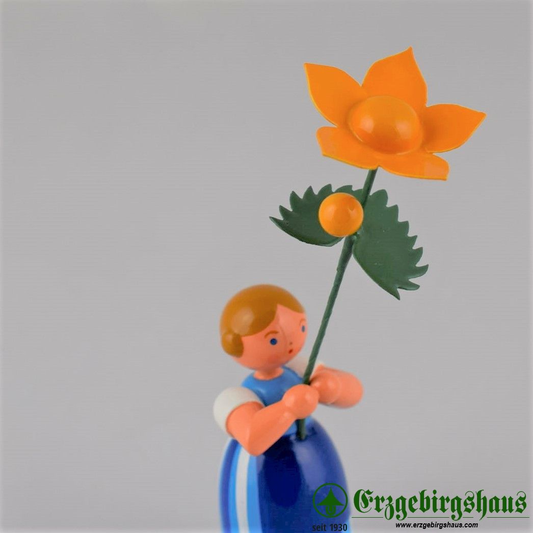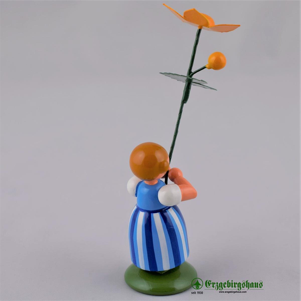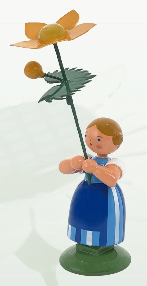 - Figur "Mädchen mit Sumpfdotterblume – Wiesenblumenmädchen auf Sockel" farbig lackiert