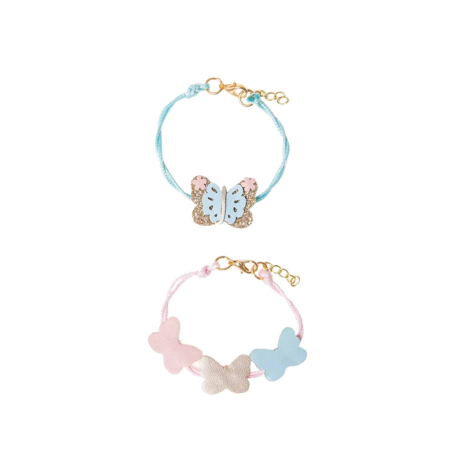 Flatter wie ein Schmetterling mit diesem bezaubernden Set aus zwei Armbändern mit unserem funkelnden Goldschmetterling mit zarten pastellrosa und blauen Kunstlederdetails und einer Reihe hübscher Schmetterlinge.