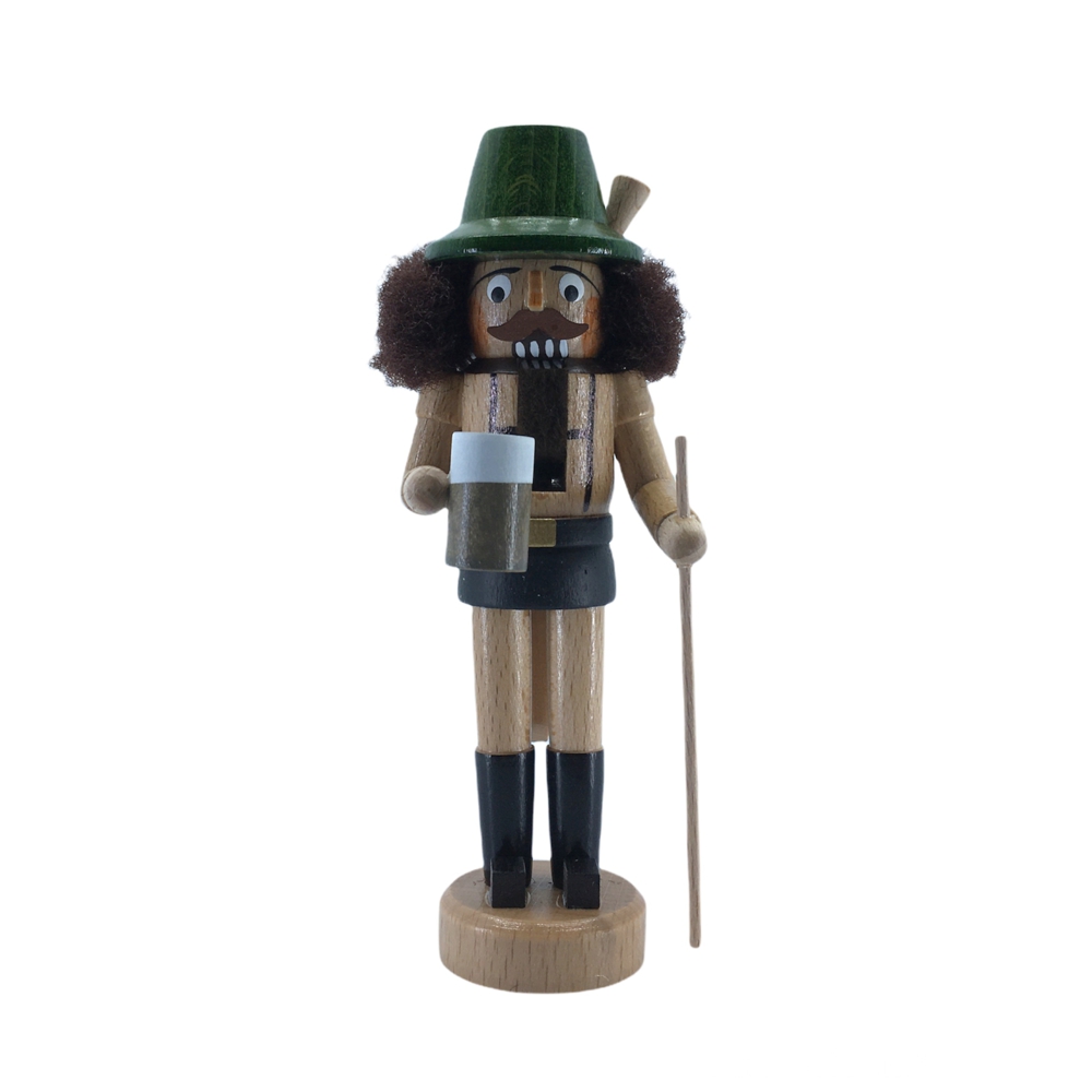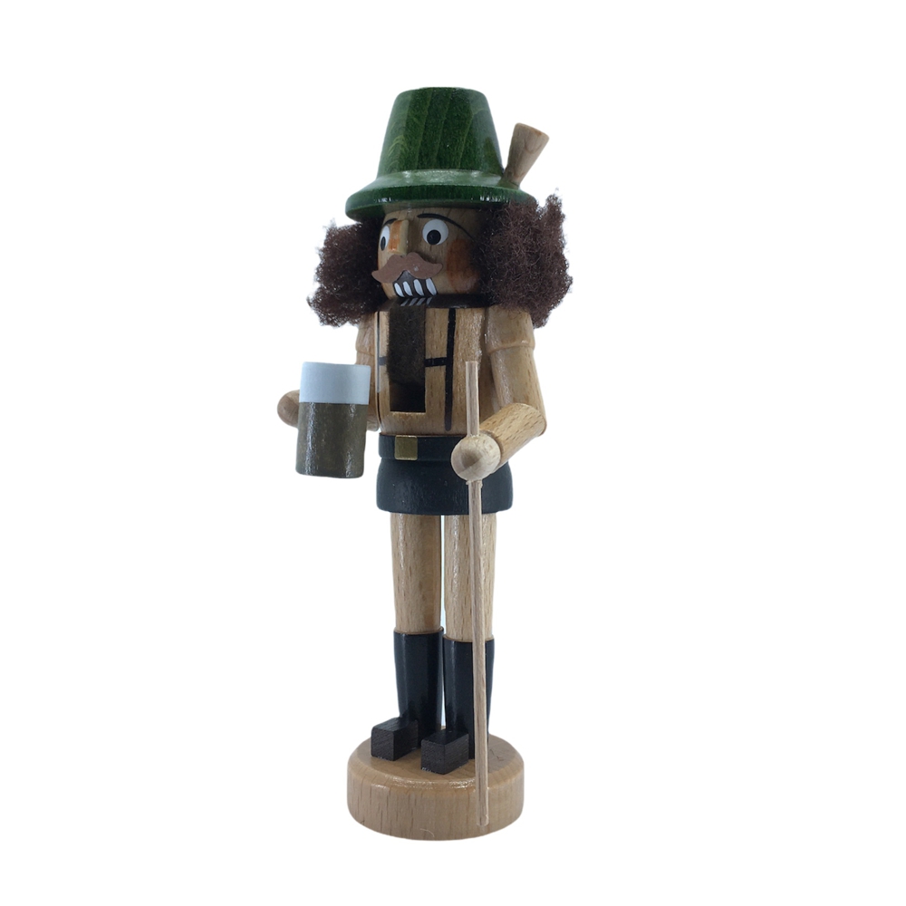 Mini-Nussknacker Bayer natur mit Bierkrug und Wanderstock.