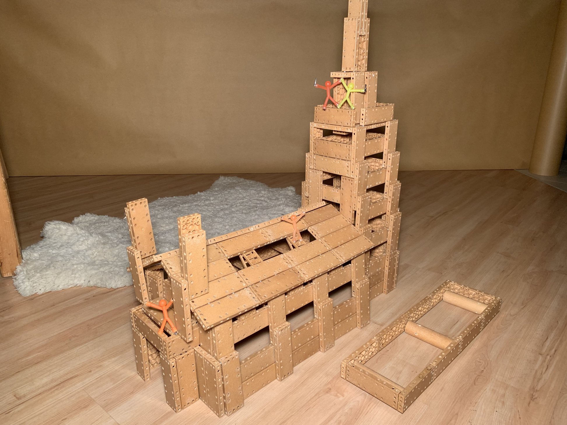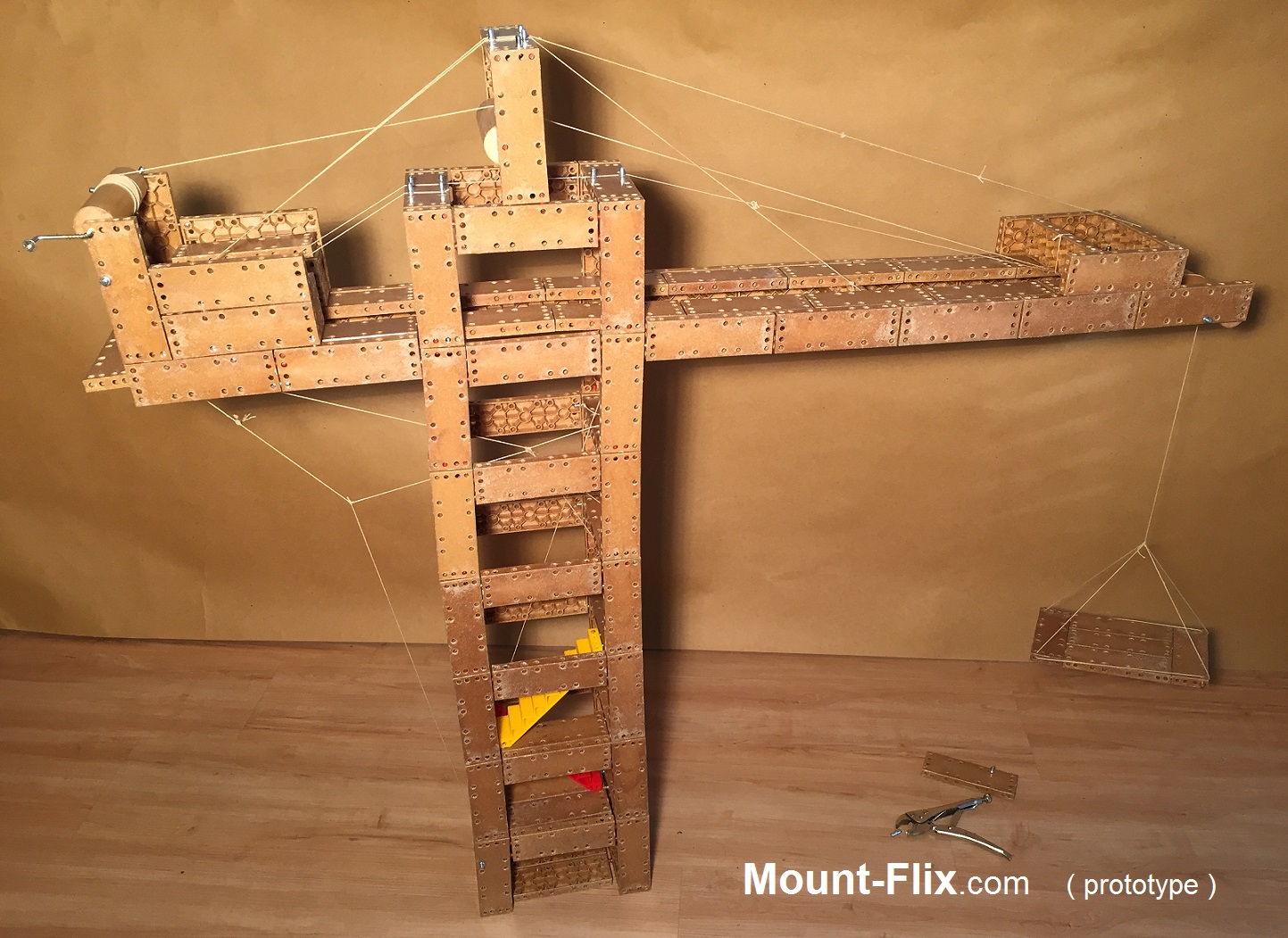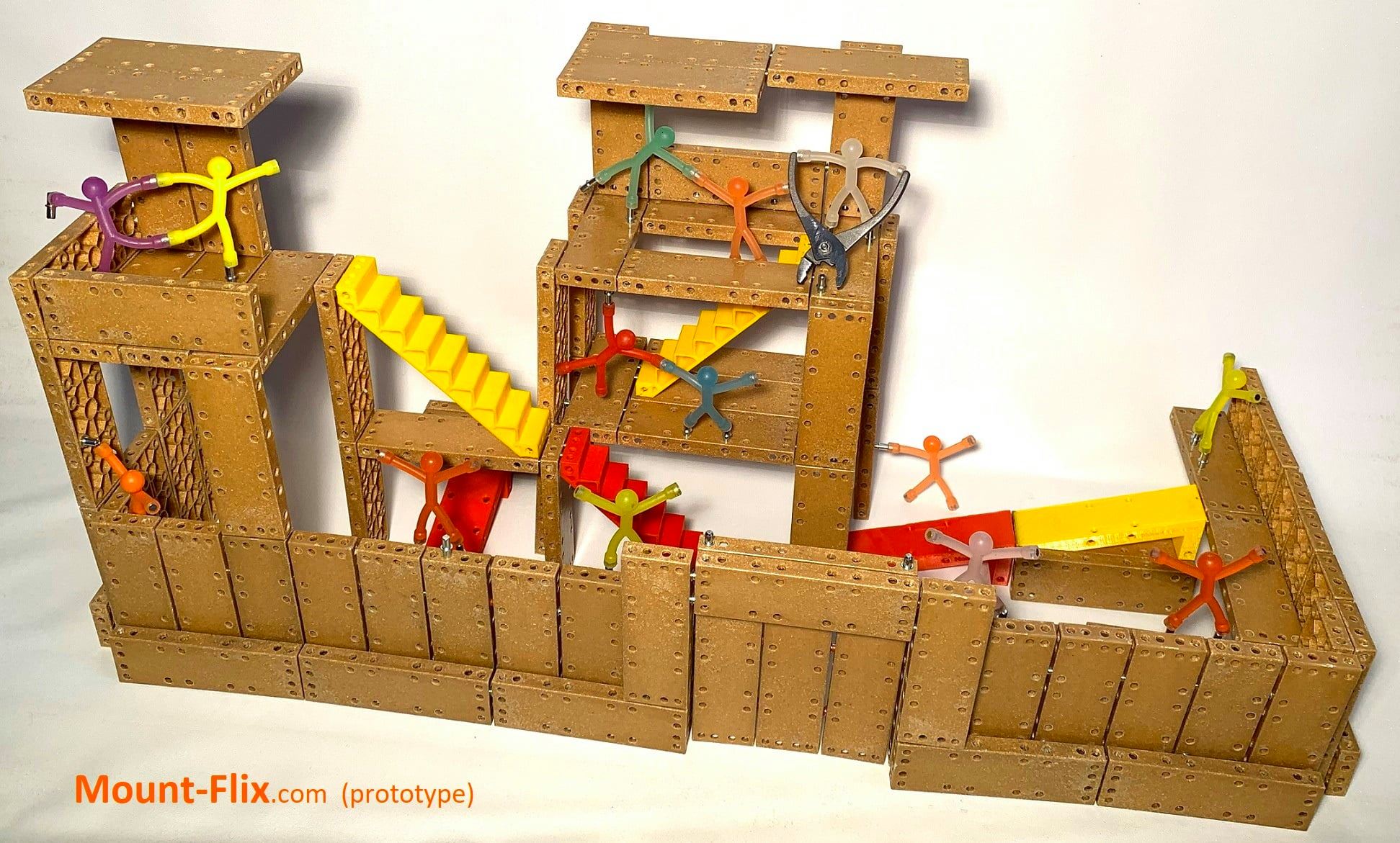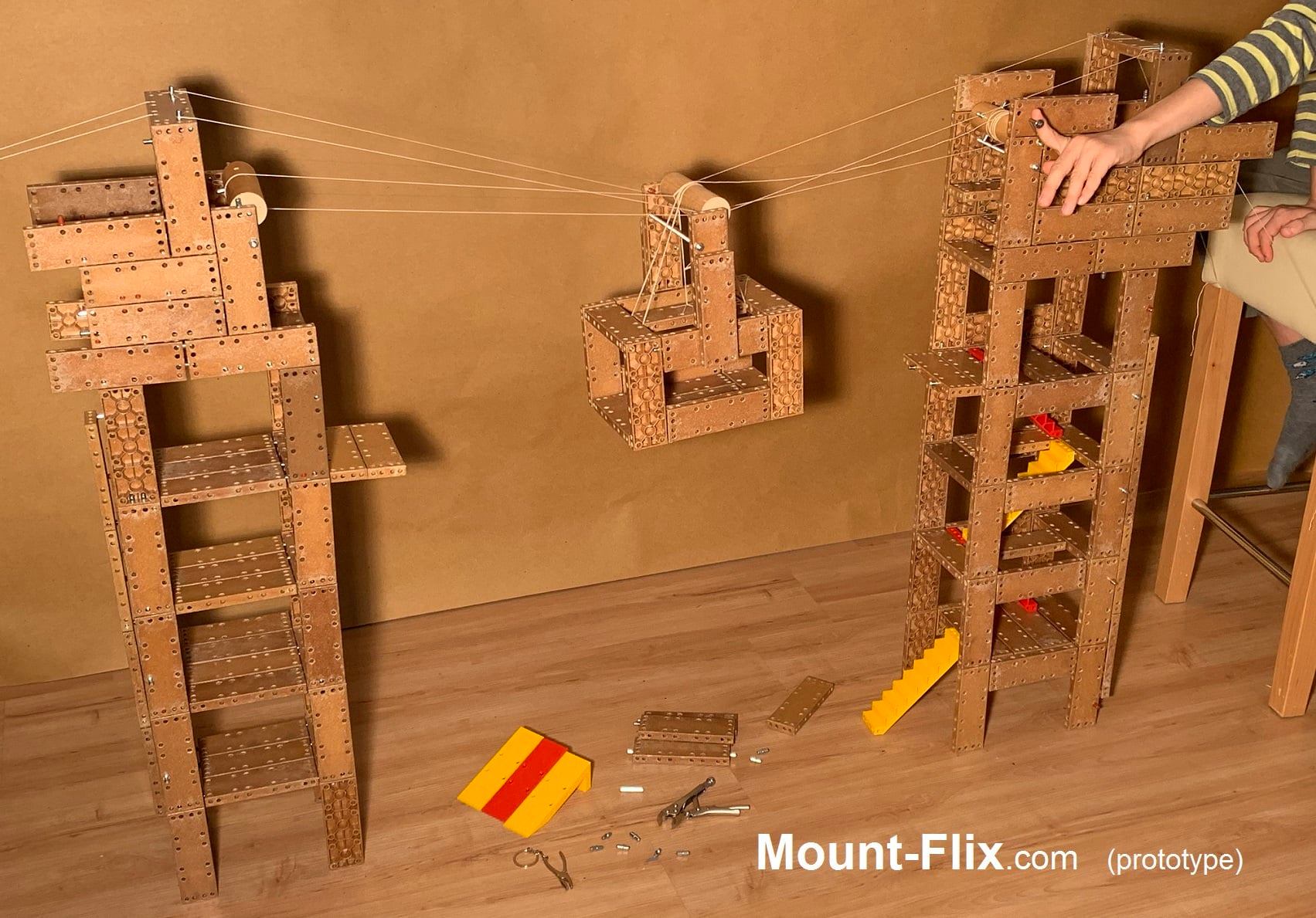 Mount-Flix ® nutzt Biokunststoff, da aufgrund der zahlreichen Bohrungen ein Massivholzprodukt derzeitig leider noch um ein vielfaches teurer in der Fertigung ist und die Verbindungsstifte bei Toleranzen zwischen den Bohrungen ein Ausbrechen mit der Massivholz- oder Multiplexfaser zum nahe liegenden Bauteilrand verursachen können.