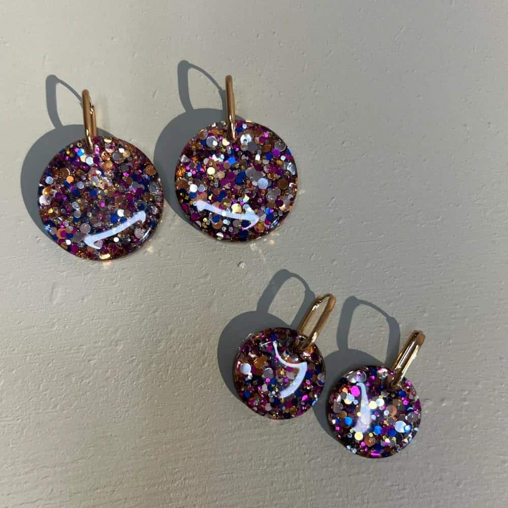 Handgefertigte, hypoallergene Funky Sparkle Ohrringe in zwei Größen.