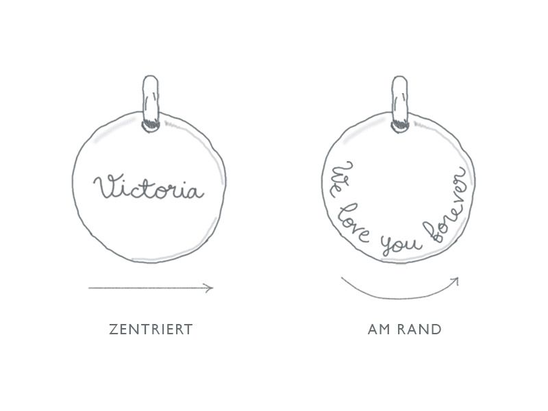 Bitte beachten Sie, dass jegliche Abweichungen in der Tiefe der Gravur, Schriftart oder Platzierung Teil der einzigartigen Ästhetik Ihres personalisierten Schmuckstückes sind.