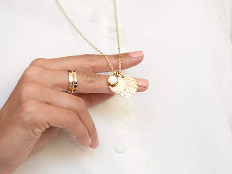 Die wunderschöne Symbiose aus zwei kontrastreichen Plättchen, einem gehämmerten und einem kleineren runden Anhänger mit einer glatten Oberfläche, sorgt für einen außergewöhnlichen Look. Ob im Alltag oder zu besonderen Anlässen, diese gravierte Halskette ist ein Hingucker und jedes der Plättchen kann einzeln für sich oder in Kombination getragen werden. Lassen Sie das flache Plättchen mit Ihrer persönlichen Wunschgravur mit bis zu 20 Zeichen von uns per Hand gravieren – ob ein Name, ein Datum oder ein inspirierendes Mantra, auf diesem personalisierten Schmuckstück findet Ihre Wunschbotschaft platz. Die gehämmerte Münz Duo Halskette ist in 18kt Vergoldung, 925er Sterlingsilber und 18kt Rosévergoldung erhältlich und kann mit jeder der drei Kettenlängen und zwei Kettenstilen kombiniert werden.