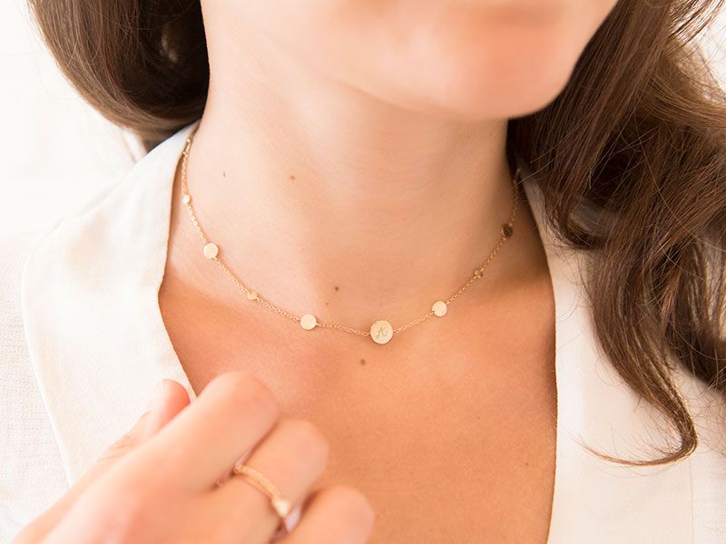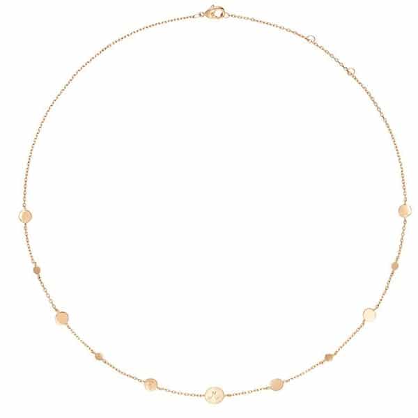 Diese raffinierte Kette überzeugt nicht nur durch die zarten Pastille-Charms, sondern auch durch die justierbare Länge. Somit können Sie diese nach Herzenslust mit anderen Ketten kombinieren. Erhältlich in 18kt Vergoldung, 925er Sterlingsilber oder 18kt Rosévergoldung, können Sie die Kette von uns per Hand mit bis zu sieben Initialen Ihrer Wahl auf den Plättchen gravieren lassen.