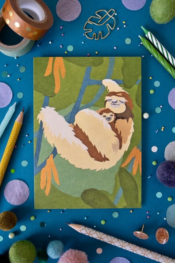 Schreibe die erste Bewertung für „Postkarte Kunstdruck, Faultier und Baby“