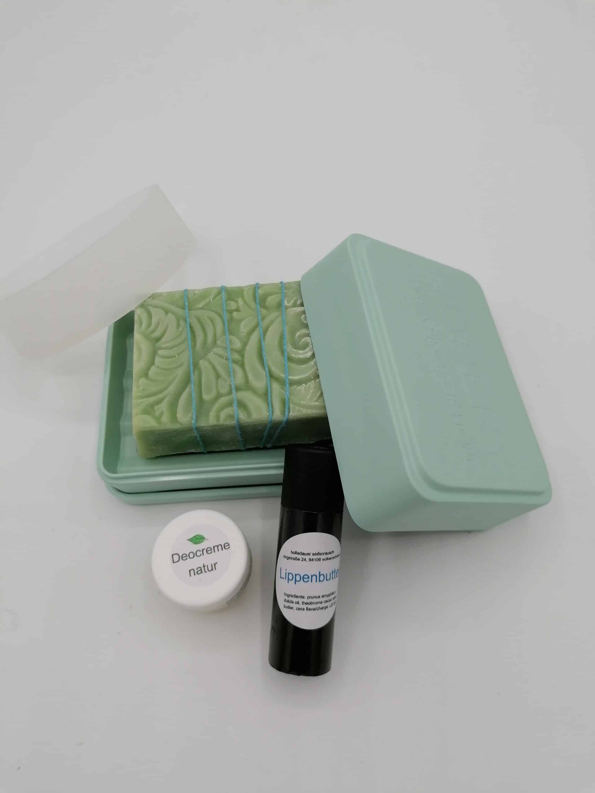 Mit der Box und Seife kannst du auf viele unnötige Plastikflaschen verzichten.