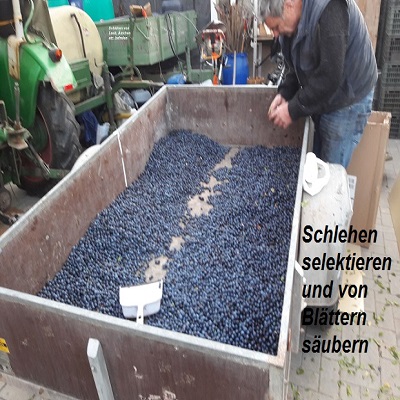 Schlehen werden zumeist erst nach dem ersten Frost am Strauch geerntet, ersatzweise Tiefkühlkälte. Durch die Frosteinwirkung werden ca. 50% der bitter schmeckenden Gerbstoffe enzymatisch abgebaut. Ein vollständiger Abbau der Gerbstoffe wird nicht angestrebt. Sie tragen wesentlich zum Geschmack der Schlehenfrüchte bei.
