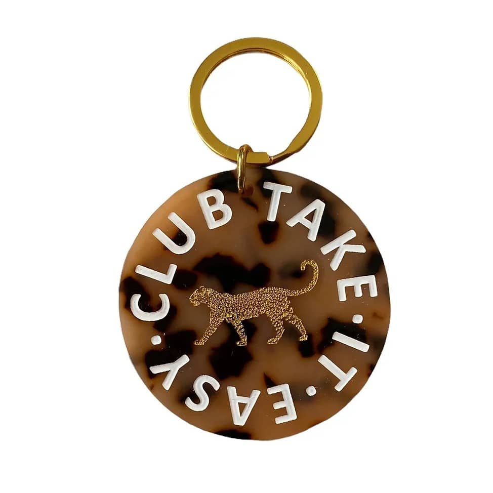 Schlüsselanhänger aus recyceltem Acryl in Leo Look mit Gravur in Gold und Weiss.