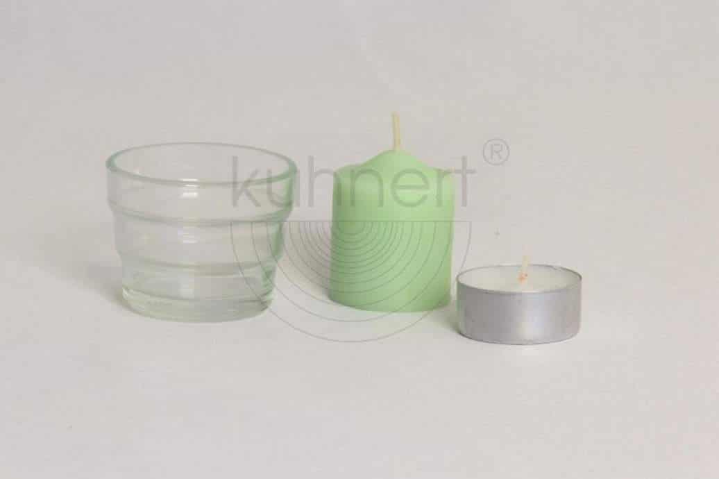Das Glas ist passend für ein Teelicht oder eine Stumpenkerze, aus Sicherheitsgründen sollte die Kerze das Glas jedoch nicht überragen.