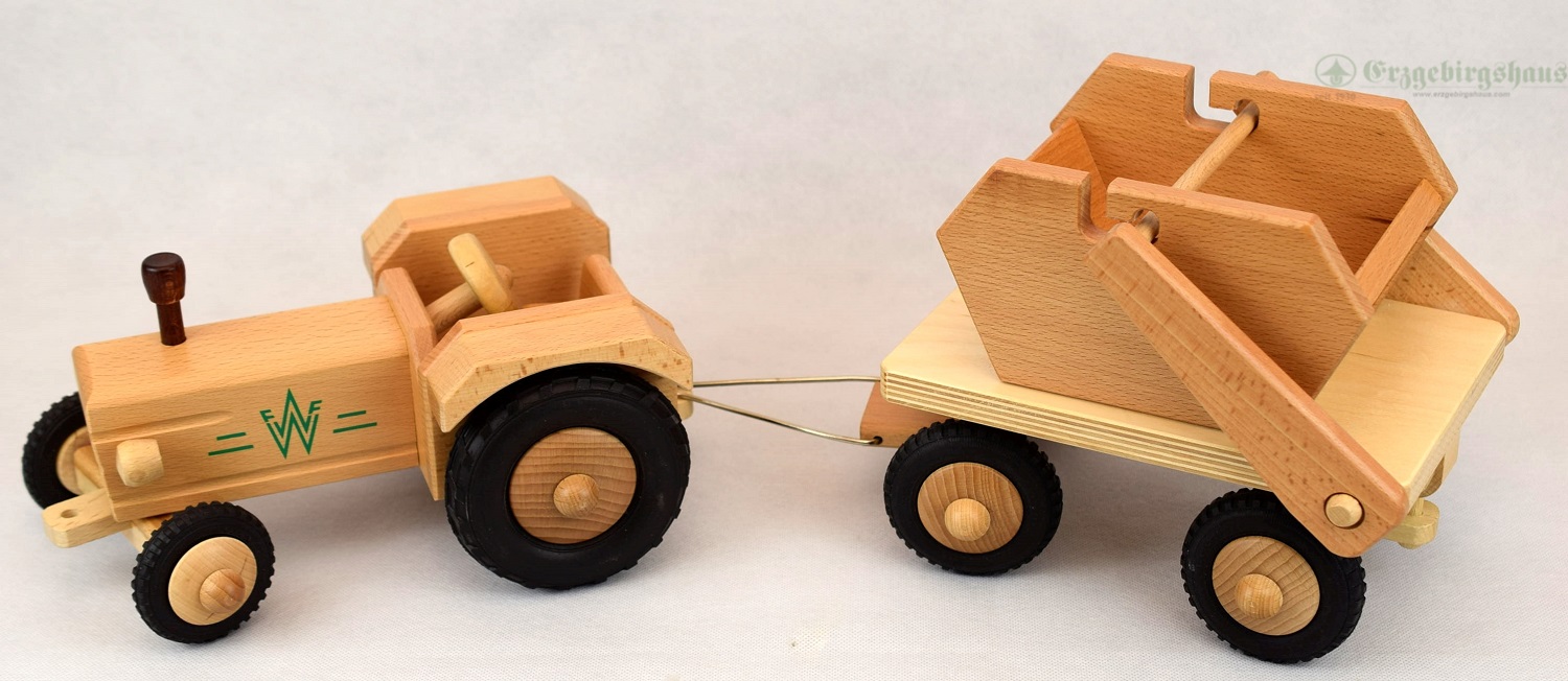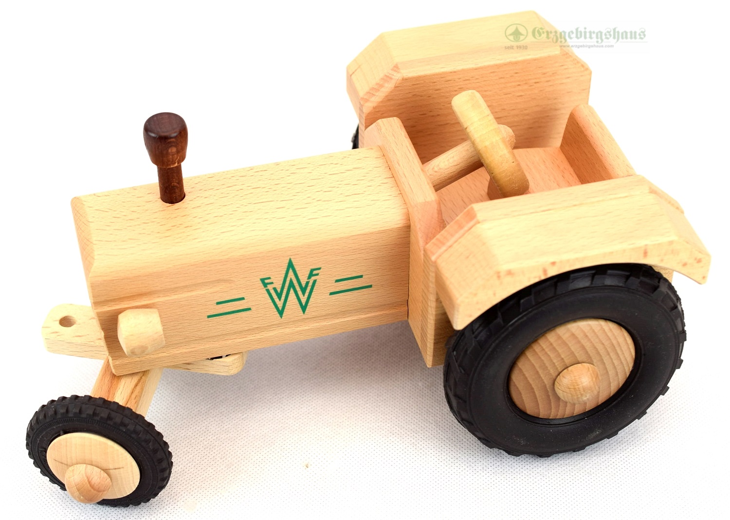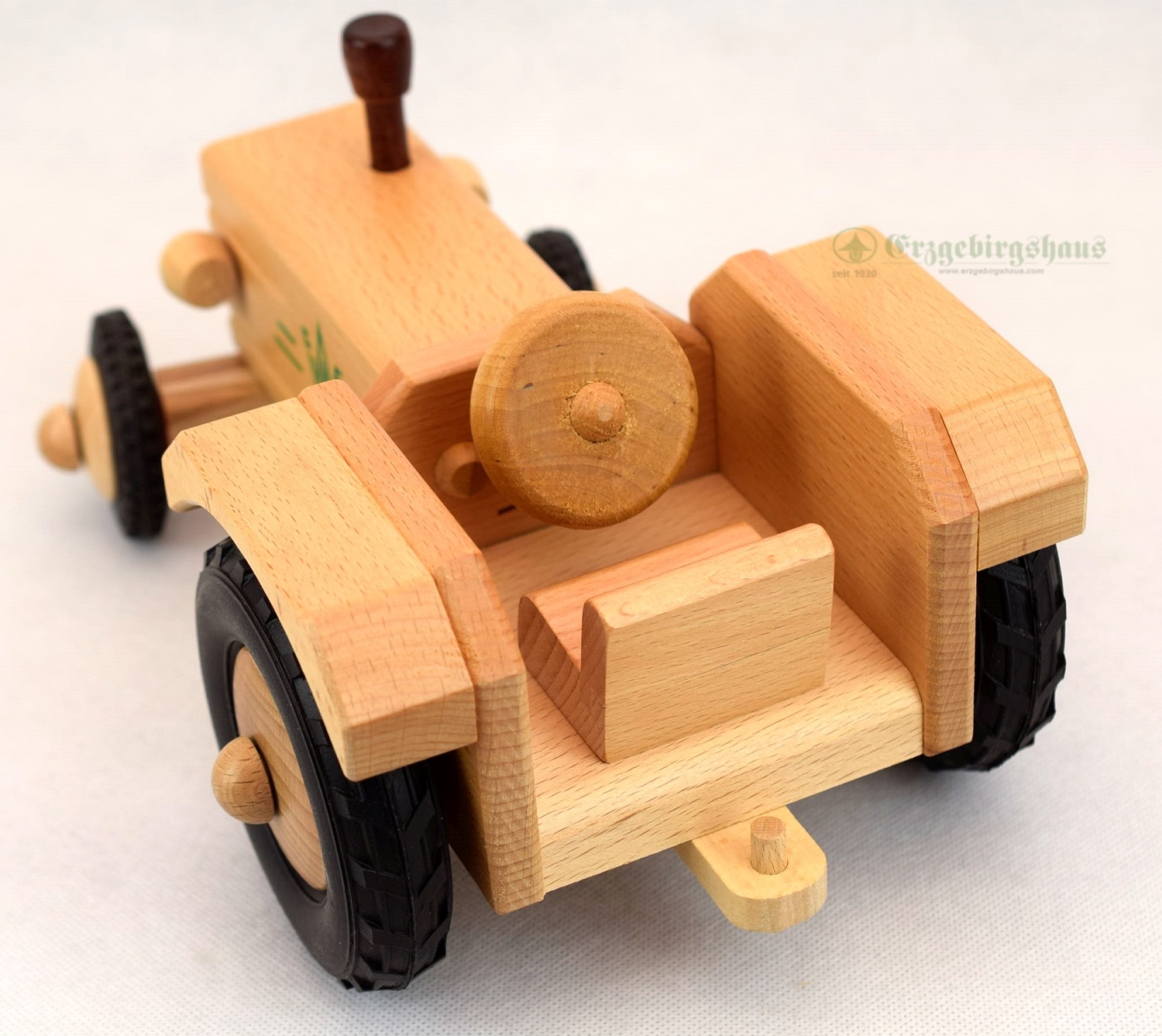 Die stabilen und robust gebauten Fahrzeuge der Marke "Werdauer Holzspielzeug" lassen Kinderherzen höher schlagen. Der Traktor ist lenkbar und bei Bedarf kann ein Hänger an die vorhandene Anhängekupplung gehängt werden, wodurch sich noch viel mehr Spielmöglichkeiten ergeben. Dieses Fahrzeug ist so stabil, dass es über Generationen hinweg weiter gegeben werden kann. Ein Produkt aus Sachsen, Made in Germany.