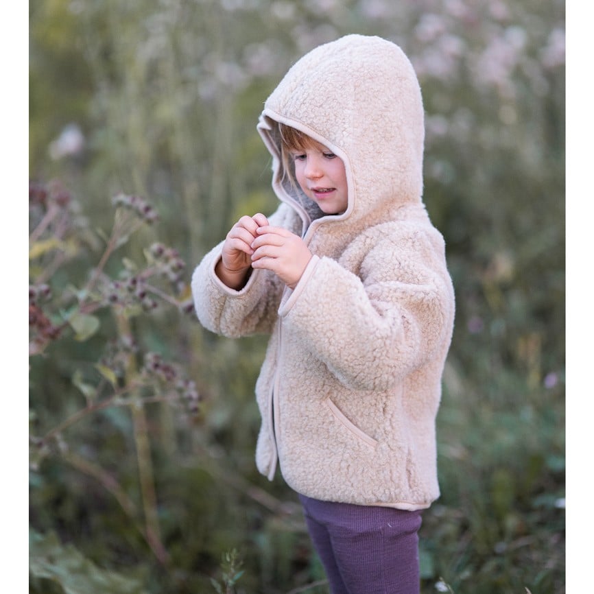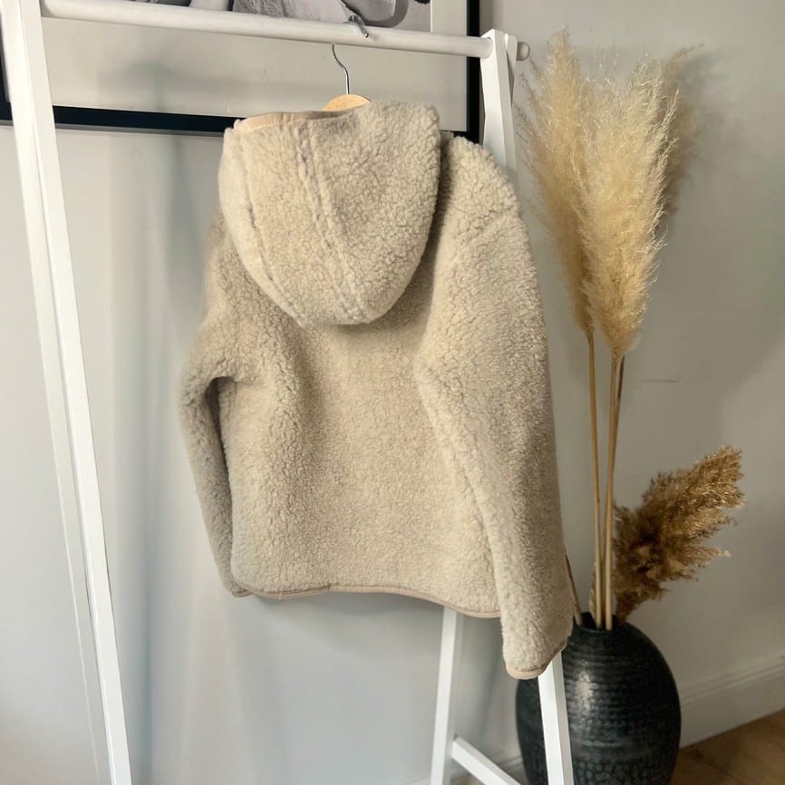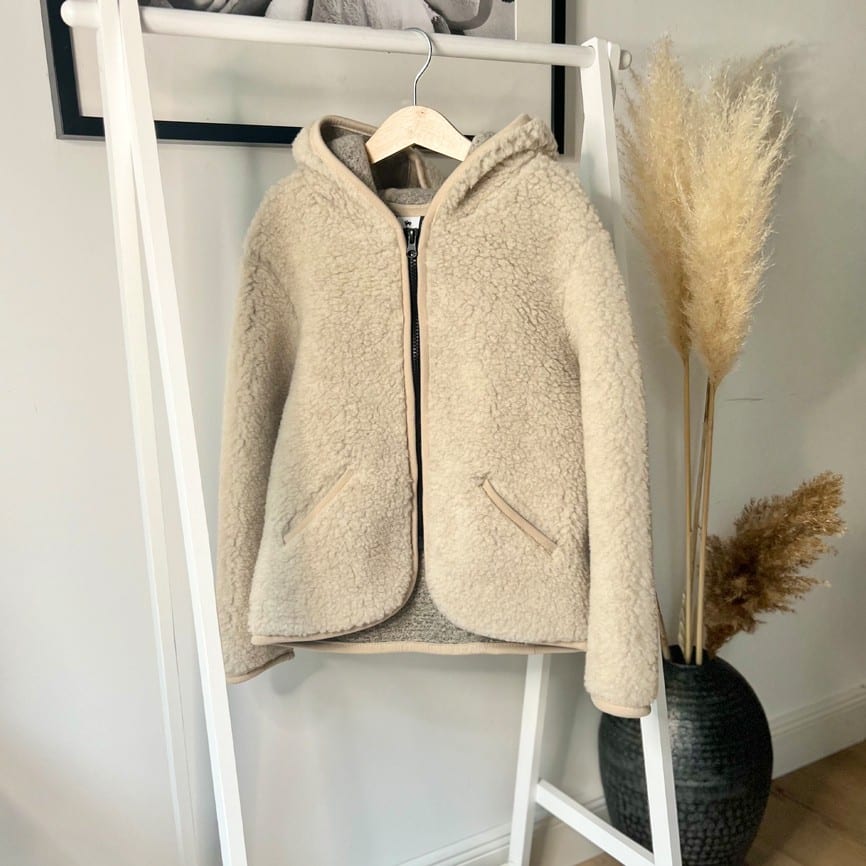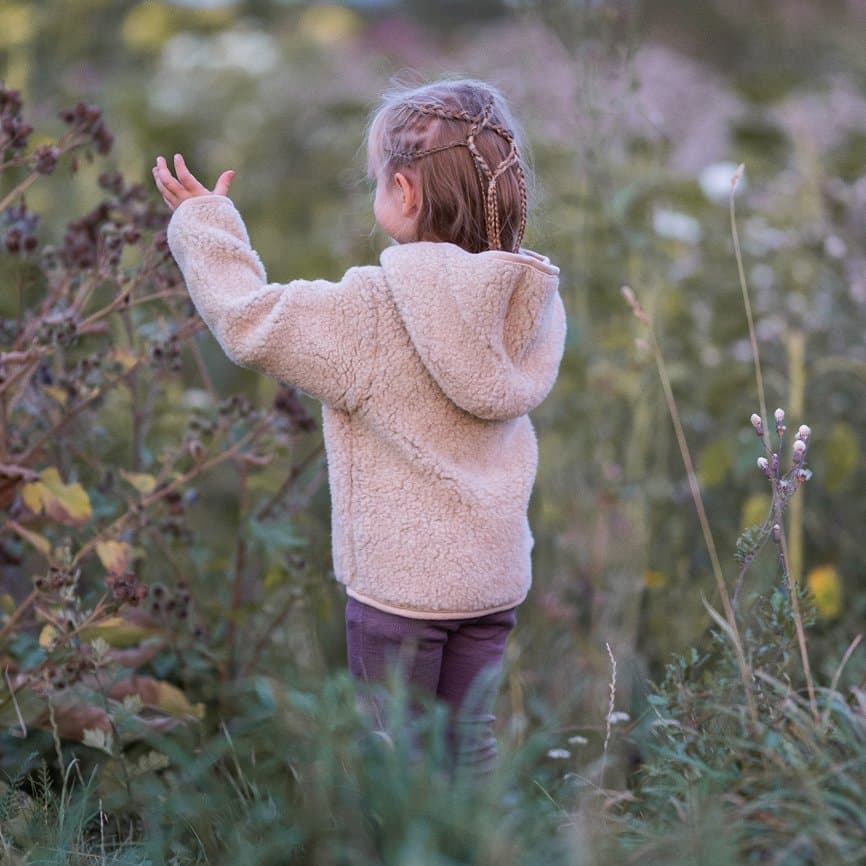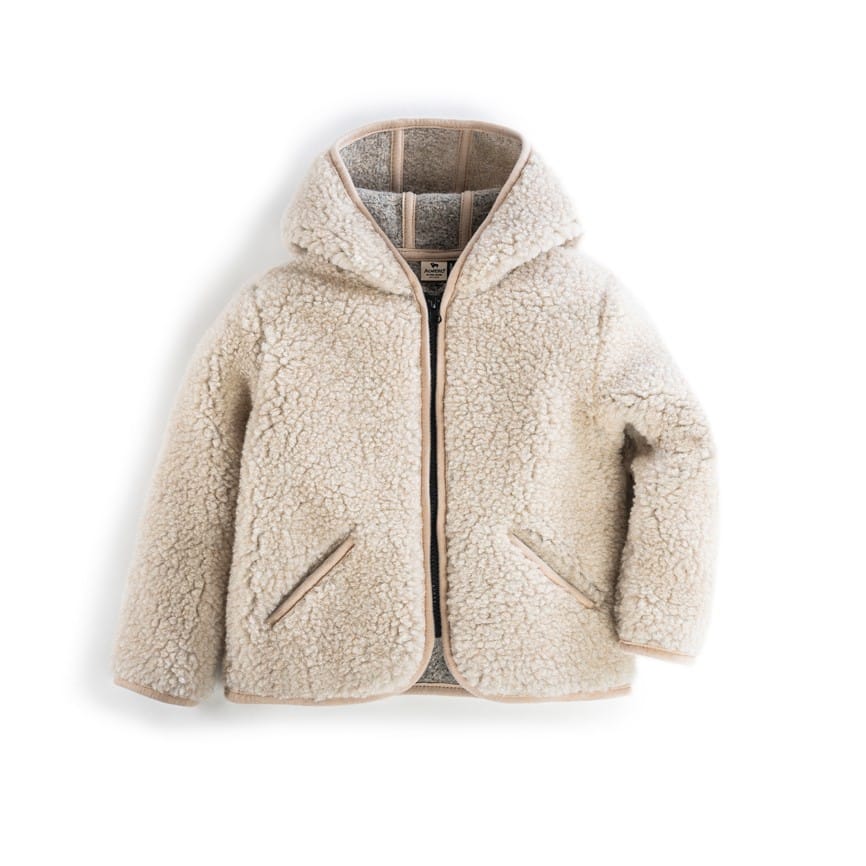 ULTRALEICHTE WOLLE 100 % Wolle in einem Fleece mit Schaffellstruktur und einer sehr leichten Formel. Der Stoff zeichnet sich durch außergewöhnliche Weichheit und Elastizität aus, wodurch er uns sanft umhüllt. Charakteristisch für dieses Material ist seine schwarze Basis, die die Farbe des verwendeten Wollvlieses intensiv zur Geltung bringt.