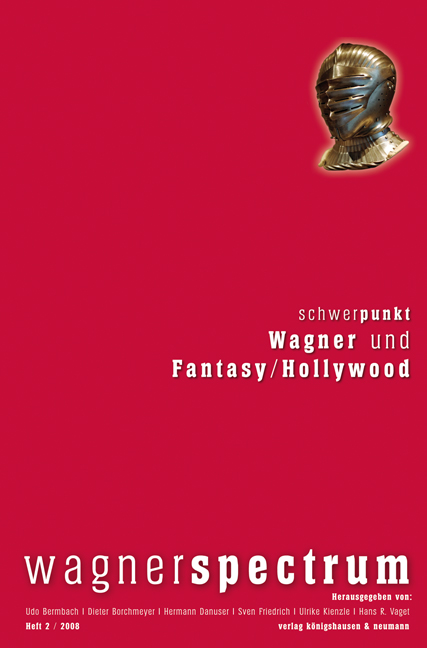 Editorial Aufsätze zum Schwerpunkt: Susanne Vill: Wagner Visionen – Motive aus Werken Richard Wagners in Fantasyfilmen – Alex Ross: Der Herr der Ringe und Der Ring des Nibelungen – Tolkien und Wagner – Albrecht Riethmüller: „All in the Family“ – Cosima und Richard Wagner auf der Leinwandbühne von William Dieterle und Ken Russel – Tobias Plebuch: Richard Wagner im Film bis 1945 – Claudius Reinke: Richard Wagner im Film nach 1945 – Aufsätze / Essays: Rüdiger Görner: Rheintöchter an der Themse – oder: zur Bedeutung von G.B. Shaws Wagner-Kritiken – Holger Reiner Stunz: Richard Wagners Partituren als Spielball der Zeitgeschichte. Eine Spurensuche – Johanna Dombois: Das Auge, das sich wechselnd öffnet und schließt – Zur Szenographie des Wagner-Vorhangs – Sue Cole / Kerry Murphy: Wagner in the Antipodes – Besprechungen / Bücher – CD