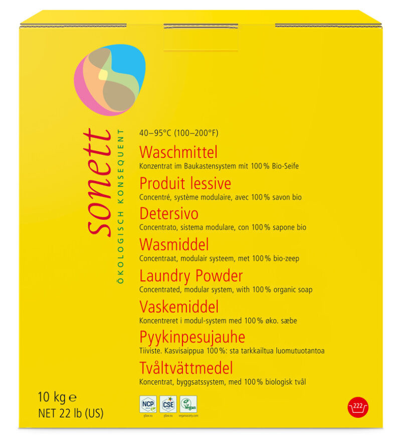 Für ein Seifenwaschmittel ist weiches Wasser unbedingte Voraussetzung. Durch das Baukastenprinzip ist somit die Grundlage geschaffen, die unübertroffenen Vorteile der Seife auch bei härterem Wasser nutzen zu können. Wir verzichten auf Rieselmittel, Füllstoffe, optische Aufheller, Phosphate, Enzyme.