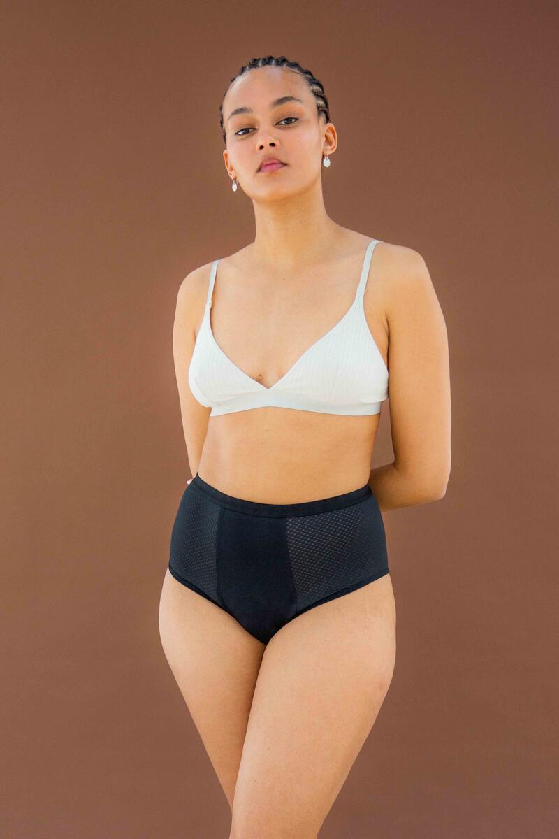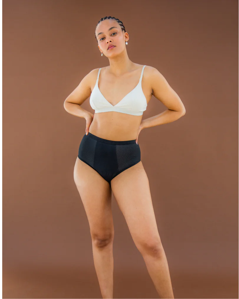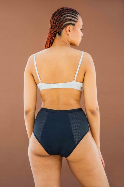 Diese Unterwäsche – mit recyceltem Mesh, das sich an deine Hüften schmiegt – bietet mehr Schutz und hat eine Passform, die allen Körperformen schmeichelt. Sie ist ultradünn und absorbiert Blut von bis zu 3 Tampons oder Binden – damit du dich den ganzen Tag und die ganze Nacht über wohlfühlen kannst, ohne auszulaufen.