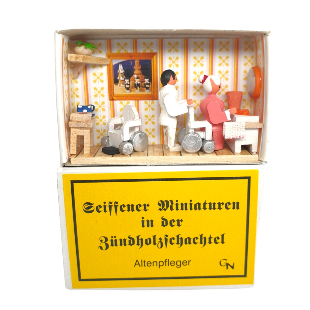 Diese Miniatur in der Zündholzschachtel – Altenpfleger ist eine weitere kleine Miniaturwelt aus dem Hause Gisbert Neuber.